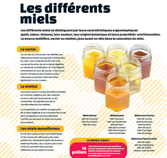 L'apiculteur "Un API AMI" garantit que ses miels proviennent exclusivement de l’une des origines florales suivantes : miels poly-floraux ou miels mono-floraux dont la liste exhaustive est indiquée dans le cahier des charges